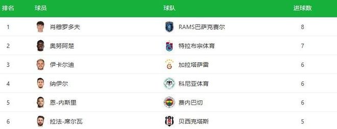 在目前在土超射手榜上領跑的球員,又是一位意甲老熟人,那就是今年夏天剛從羅馬租借到RAMS巴薩克賽爾隊的烏茲別克斯坦前鋒肖穆羅多夫,他目前已經轟入8球。而緊隨其后、虎視眈眈的,正是那位曾讓亞平寧后衛聞風喪膽的前意甲金靴、昔日藍黑軍團隊長伊卡爾迪,阿根廷前鋒目前暫列射手榜第三位,但以他的進球效率和對于土超的熟悉程度,奪回榜首只是時間問題。