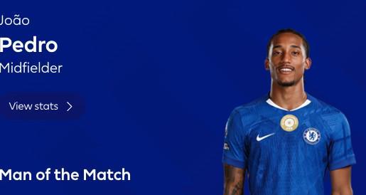 打入一球,若昂-佩德羅當(dāng)選切爾西vs狼隊(duì)全場(chǎng)最佳球員